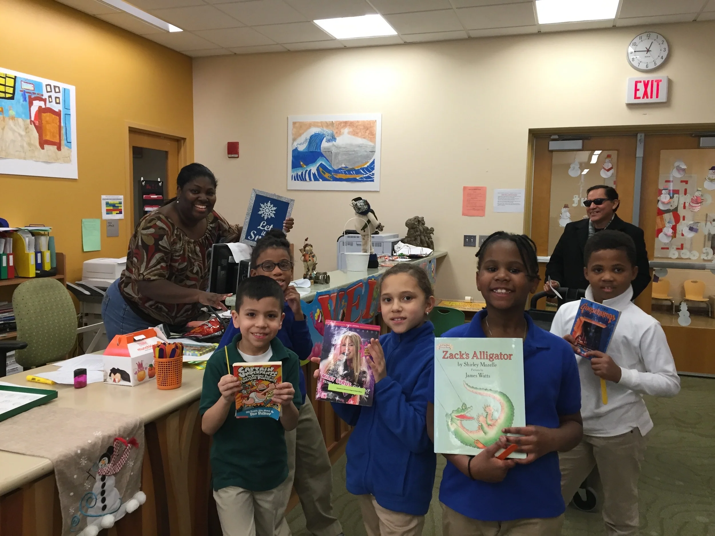 This school has so much enthusiasm for books and reading! When Julio and I arrived with about 450 gently used books, we were greeted with warm hugs from Rebecca Feola, the Literacy Specialist. We soon learned as we carted the books to the library that Rebecca has a huge heart and all the kids and faculty seem to love her. Once we got into their beautiful library, the librarian, Tiffany Ladson-Lang, shouted out to the 20+ kids there that new books had arrived. The kids all shouted back "Yea! We love books!" Wow - makes you want to bring more books every day.